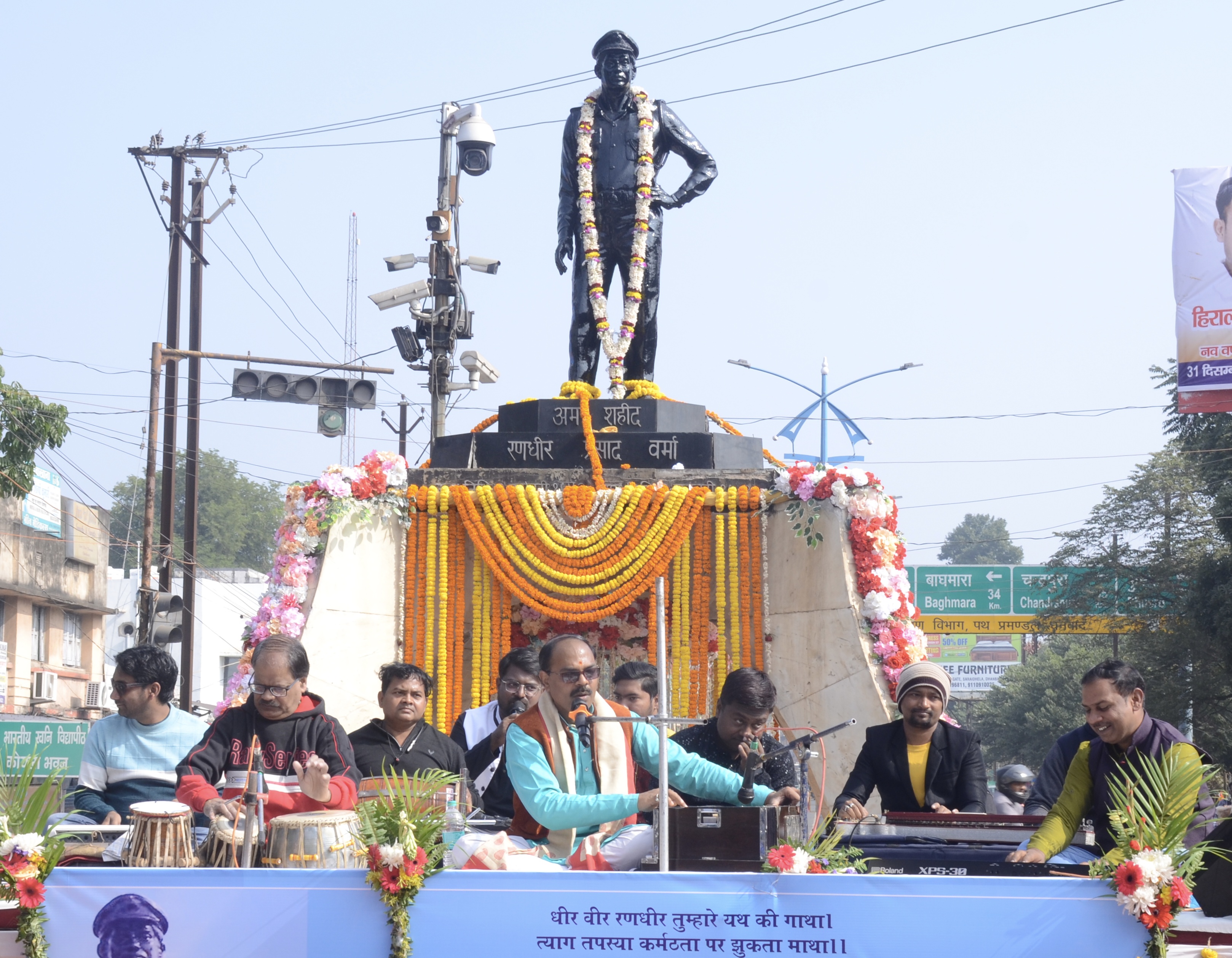 श्रद्धांजलि सभा में प्रख्यात गायक पंकज दूबे व उनकी टीम ने शहीद को संगीतमय श्रद्धांजलि दी. उन्होंने सबसे पहले वैष्णव जन तो तेने कहिए….प्रस्तुत किया. इसके बाद शहीद वर्मा के आदर्शों से ओतप्रोत राष्ट्रभक्ति और वीरता के ओजपूर्ण गीत प्रस्तुत किये.