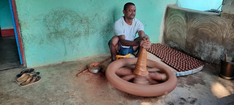 Diwali 2021, चतरा न्यूज (विजय शर्मा) : इस साल भी कुम्हारों की दिवाली फीकी रहेगी. सरसों व तिल के तेल तथा घी की बढ़ती कीमतों ने कुम्हारों के चाक की रफ्तार धीमी कर दी है. तेलों के बढ़ते दाम के कारण मिट्टी का दीया कम बिकने की उम्मीद है. यह आकलन दुर्गा पूजा के दौरान दीयों की मांग नहीं होने पर लगाया जा रहा है. इटखोरी के कुम्हार इस बात को लेकर काफी चिंतित हैं कि पिछले साल कोरोना महामारी ने कमाई पर पानी फेर दिया था. इस साल महंगाई का असर पड़ रहा है.
