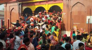 मंदिर का हर कोना भक्तों की भीड़ के आगे छोटा पड़ता दिखा. किसी भी श्रद्धालु को मंदिर के गर्भगृह में प्रवेश की इजाजत नहीं दी गयी.गर्भगृह के अंदर पंडित भीखम तिवारी ने सभी श्रद्धालुओं का प्रसाद,फूल,फल,चुनरी व अन्य पूजन सामग्री मां अंबिका के पिंड पर अर्पित किया.