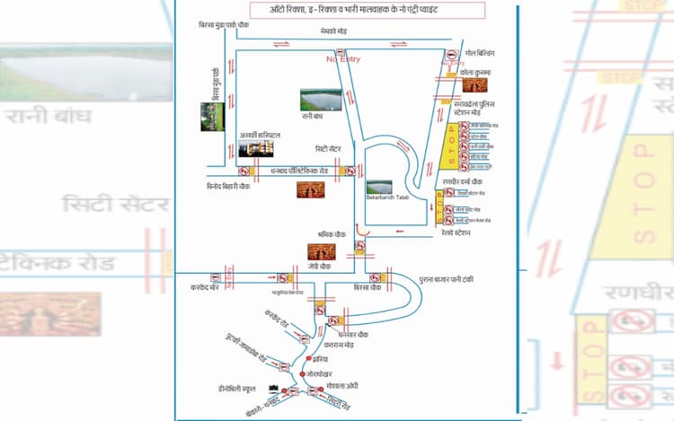 जेसी मल्लिक, पटेल चौक, पानी टंकी, हटिया मोड़, प्रेम नगर गली, रणधीर वर्मा, अनुमंडल कार्यालय रोड़, भोला स्वीटस, रेलवे स्टेशन मजार की ओर से हीरापुर की तरफ नो इंट्री रहेगी.