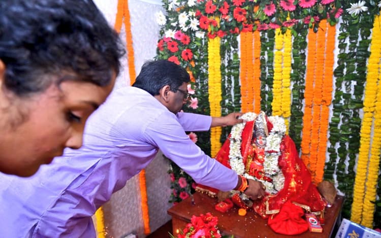 दुर्गोत्सव की धूम के बीच दिशोम गुरु शिबू सोरेन ने मुख्यमंत्री आवास स्थित मंदिर में मां दुर्गा से आशीर्वाद लिया. इस मौके पर पत्नी रूपी सोरेन समेत अन्य परिजन भी शामिल हुए. गुरुजी ने भी राज्य में शांति और खुशहाली के लिए माता रानी से आशीर्वाद मांगा.