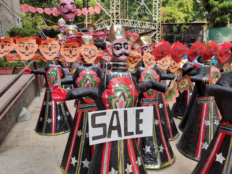 दशहरे के लिए रावण को तैयार करने वाले कारीगर बताते हैं…कोरोना की वजह से भव्य आयोजन पर पाबंदी है. भीड़ नहीं लग सकती. भीड़ ही नहीं लगेगी तो रावण जलाने का फायदा क्या. इसलिए बड़े रावण नहीं बिक रहे. गली मुहल्लों में छोटे आयोजन के लिए छुटभैये रावण खरीदे जा रहे हैं.