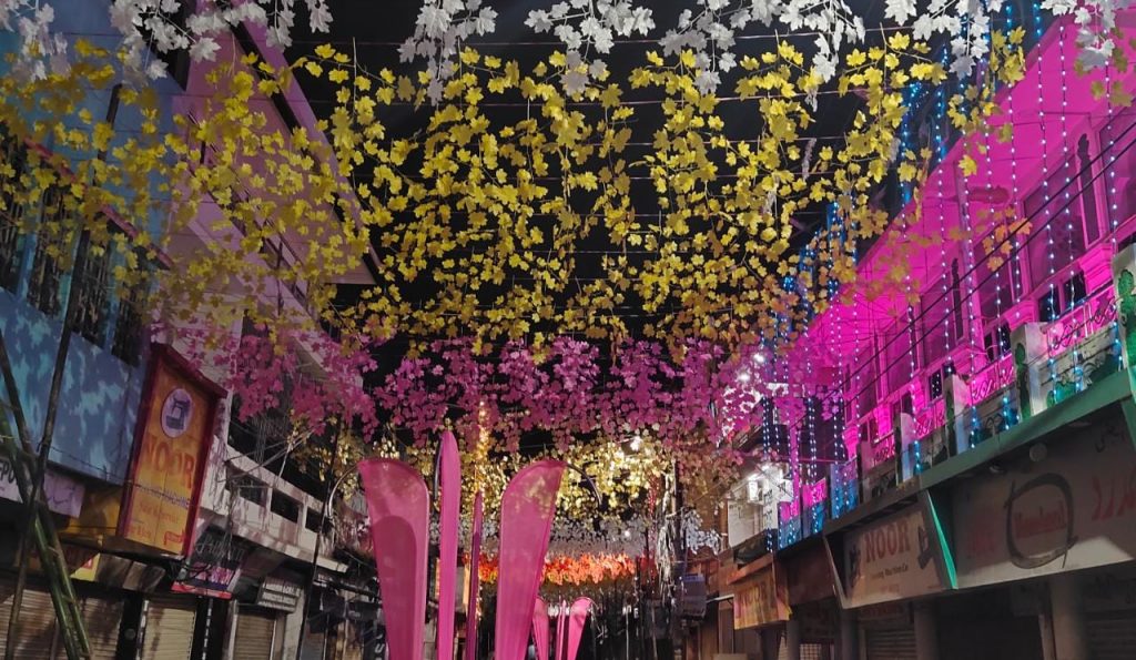 हजरत मोहम्मद सल्ल.अलैही व-सल्लम की पैदाइश 12 रबि उल अव्वल पीर 20 अप्रैल 571 ई सुबह सादिक के बाद मक्का मुअज्जमा में हुआ था. हुजूर की पैदाइश के समय पूरब-पश्चिम और काबे की छत पर तीन झंडे गड़े हुए थे. अकीदतमंदों ने अपने-अपने घरों, दुकानों और मुहल्लों में झंडा इसी याद को ताजा करने के लिए लगाया. जामा मस्जिद रोड, बुचड़टोली, सरदार रोड, कलाल टोली, खिरगांव, मंडई, नूरा, लाखे, मटवारी, पेलावल, रोमी, लोहसिंघना, हास्मिया कॉलोनी, पगमिल समेत सभी मुहल्लों में ईद मिलादुन्नबी के झंडे लगाये गये. फूलझडी, गुब्बारा, एलइडी लाइट से काफी आकर्षक ढंग से मुहल्ले को सजाया गया था.