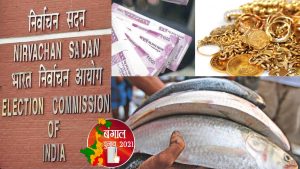 चुनाव आयोग के एक अधिकारी ने बताया कि जब्त सामग्री में हिल्सा मछली भी शामिल है. इसे उपहार देने के लिए ले जाया जा रहा था. इसके अलावा मोबाइल फोन, साड़ी, और पान मसाला भी जब्त किये गये हैं.