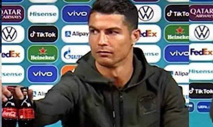रोनाल्डो ने मैच के पहले आयोजित प्रेस कांफ्रेंस में कोका कोला की दो बोतलों को हटाकर उनकी जगह एक पानी की बोतल रख दी, जो भी एक ड्रिंक कंपनी के ब्रांड की थी. रिपोर्ट के अनुसार रोनाल्डो के ऐसा करने से कोका कोला के शेयरों में गिरावट दर्ज की गयी. इधर रोनाल्डो के ऐसा करने के दूसरे ही दिन पोग्बा ने भी वैसा ही किया. हालांकि पोग्बा मुस्लिम हैं और वह एल्कोहल नहीं पीते, उन्होंने यूरो 2020 की अधिकारिक बीयर प्रायोजन हेनेकेन की हरी बोतल पर आपत्ति जतायी थी.