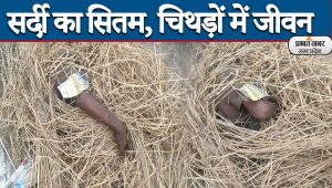 Aligarh News: रात को ठंड, चौराहे से गुजरते वाहनों की ठंडी हवा, तन पर कपड़ों का अभाव और ऊपर से ओढ़ने के लिए घास, फूस, पतेल हो तो पूरी रात ठंड से ठिठुरते हुए मंजर को ठंड की दर्दनाक तस्वीर कहें तो वह अतिशयोक्ति नहीं होगी. ऐसा ही कुछ अलीगढ़ में देखने को मिला. यहां के एटा चुंगी चौराहे पर सरोज नगर, गली नंबर 2 पर एक व्यक्ति सोमवार की सुबह घास-फूस और पतेल ओढ़कर सो रहा था. तन पर कपड़ों का अभाव था. कभी पतेल से हाथ निकल जाता तो कभी पैर.