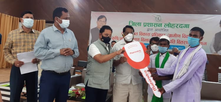 कृषि कार्यालय, लोहरदगा की ओर से 15 किसानों के बीच 50 प्रतिशत अनुदान पर हाइब्रिड धान डीआरआरएच-2, एक किसान को मक्का और एक किसान को मूंगफली का बीज दिया गया. भूमि संरक्षण कार्यालय, लोहरदगा की ओर से 80 प्रतिशत अनुदान पर 40 लाख की लागत से जेएसएलपीएस की 4 महिला स्वयं सहायता समूहों को मिनी ट्रैक्टर, ट्रेलर, कल्टीवेटर दिया गया. ग्रामीण विकास अभिकरण, लोहरदगा की ओर से प्रधानमंत्री आवास योजना (ग्रामीण) के अंतर्गत 12 लाभुकों को गृह प्रवेश कराया गया.