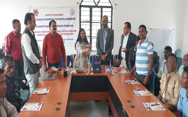 खरसावां (सरायकेला-खरसावां), शचिंद्र कुमार दाश : एक जिला-एक उत्पाद के तहत अब खरसावां में तसर की जैविक खेती को बढ़ावा दिया जायेगा. बताया गया कि भारत सरकार के वाणिज्य मंत्रालय के औद्योगिक नीति एवं संवर्धन विभाग (DPIIT) की ओर से कार्य योजना तैयार कर कार्य किया जा रहा है. इसको लेकर मंगलवार (24 जनवरी, 2023) को खरसावां के अग्र परियोजना कार्यालय में नेशनल प्रोग्राम फॉर ऑर्गेनिक प्रोडक्शन के तहत किसानों को प्रशिक्षण दिया गया. प्रशिक्षण कार्यक्रम का उदघाटन कार्यक्रम कॉडिनेटर नचिकेता एवं अपूर्व कुमार, सहायक उद्योग निदेशक (कोल्हान) शिव कुमार, हॉटिकल्चर विभाग के हनुमंत राव आदि ने दीप प्रज्ज्वलित कर किया.