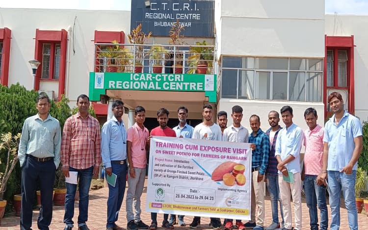 Jharkhand News: टीआरआईएफ संस्था द्वारा नाबार्ड के सहयोग से रामगढ़ जिला के दुलमी तथा गोला प्रखंड के किसानों को शंकरकंद के नये किस्म के उत्पादन को लेकर भुवनेश्वर में प्रशिक्षण दिलाया गया. इस दौरान बताया गया कि शंकरकंद की नयी किस्म भू-सोना, भू-कृष्णा, कंचनगढ़ एवं किशन का उत्पादन किसानों के लिए लाभदायक है.