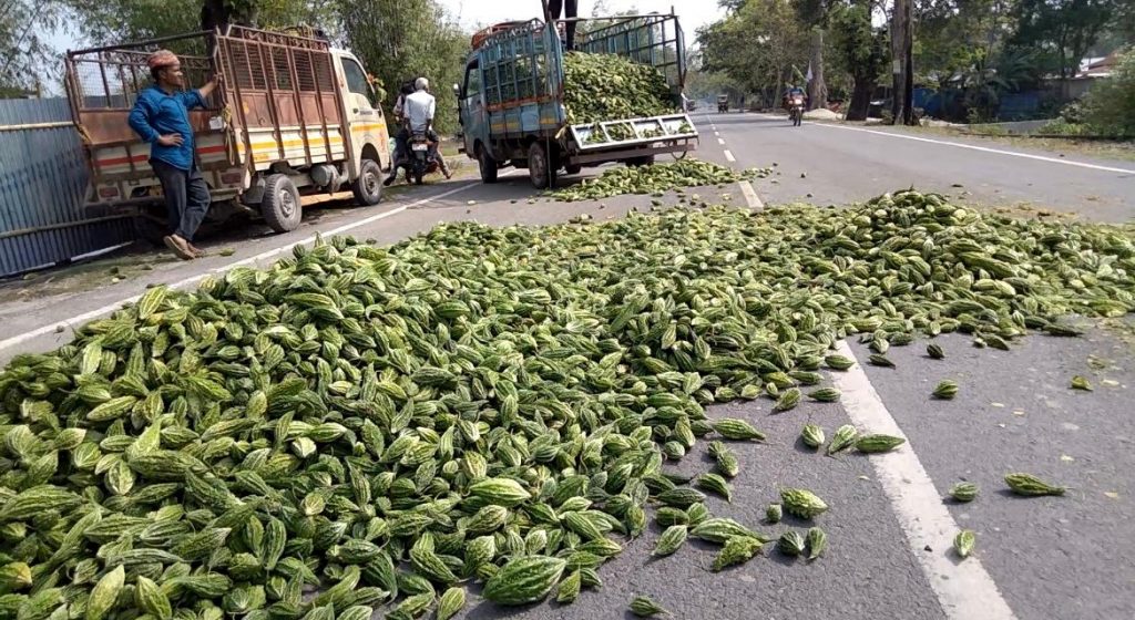 थोक विक्रेताओं का कहना है, बुधवार को राम नवमी है. राम नवमी के कारण सब्जियां बिहार नहीं जा रही है. इस वजह से उन लोगों ने कम परिमाण में ही किसानों से सब्जियां खरीदी है. ज्यादा सब्जियां खरीदने से उन्हें नुकसान उठाना पड़ेगा. वहीं सब्जियां नहीं खरीदने से नाराज किसानों ने विरोध प्रदर्शन किया. बाद में मयनागुड़ी पुलिस के हस्तक्षेप से किसानों ने विरोध प्रदर्शन समाप्त किया.
