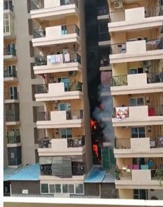 नोएडा गौर फ्लैट से उठ रहे धुएं के काले गुब्बारे