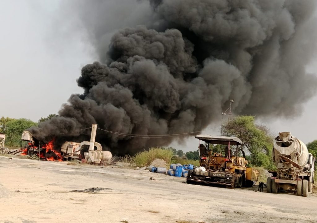 झारखंड में गढ़वा जिले के मझिआंव प्रखंड मुख्यालय से महज दो किलोमीटर उत्तर में कॉलेज के बगल में स्थित सड़क निर्माण कंपनी (आरकेटीसी) के हॉट (डामर) मिक्सिंग प्लांट में गुरुवार को अचानक आग लग गई. आग का गुबार करीब चार किलोमीटर दूर तक देखा गया. पड़ोस का गांव पूरी तरह धुआं-धुआं हो गया. गांव में कुछ भी देख पाना मुश्किल था. लोगों को काफी परेशानियों का सामना करना पड़ा. बताया जा रहा है कि आग लगते ही मिक्सिंग प्लांट के ऑपरेटर और चार मजदूर जान बचाकर भागे. इसी दौरान कंपनी के कर्मचारियों तथा मझिआंव थाना ने गढ़वा दमकल विभाग को फोन किया. इसके बाद दो बजे दमकल विभाग की गाड़ी आई और आग पर नियंत्रण करने की कोशिश शुरू की. तब तक पूरा मिक्सिंग प्लांट जलकर राख हो चुका था. घटना के समय वहां काम कर रहे मिक्सिंग प्लांट के ऑपरेटर प्रेम साहू एवं मजदूर बरडीहा प्रखंड के सलगा गांव के विकास यादव, योगेंद्र यादव, संतोष यादव एवं कांडी थाना क्षेत्र के सोनपुरवा गांव निवासी विमलेश यादव व अन्य प्रत्यक्षदर्शियों ने बताया कि शॉर्ट सर्किट से अचानक आग लग गई. जैसे ही आग लगी, हम वहां से भागे. अपने इंचार्ज को इसकी खबर दी. इस संबंध में कंपनी के अशोक कुमार यादव ने कहा कि हॉट मिक्सिंग प्लांट में शॉर्ट सर्किट से आग लग गई थी. इसके बाद दमकल विभाग को आग लगने की सूचना दी गई. आग लगने की वजह से कंपनी को लगभग 50 लाख रुपए का नुकसान हुआ है. आग लगने की सूचना मिलने पर नगर पंचायत के कार्यपालक पदाधिकारी शैलेश कुमार एवं थाना के एसआइ आलोक कुमार पुलिस बल के साथ पहुंचे और वहां मौजूद लोगों से विस्तृत जानकारी ली. आग लगने के कारणों की जांच शुरू कर दी गई है.