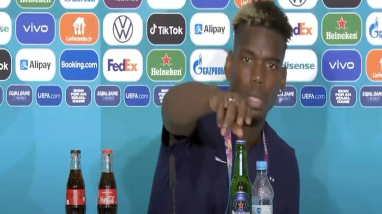 Euro Cup 2020: यूरो कप 2020 मैदान पर हो रही घटनाओं के लिए नहीं बल्कि ऑफ-द-फील्ड घटनाएं भी हुई हैं जिन्होंने सुर्खियां बटोर रहा है. हंगरी के मुकाबले से पहले प्री-मैच प्रेस कॉन्फ्रेंस के दौरान क्रिस्टियानो रोनाल्डो (Cristiano Ronaldo) के कोका-कोला की बोतलों को हटाने की घटना के बाद दिग्गज फुटबॉलर पॉल पोग्बा ने भी प्रेस कॉन्फ्रेंस में कुछ ऐसा ही किया है. फ्रांस के मिडफील्डर पॉल पोग्बा (Paul Pogba) ने मंगलवार को कॉन्फ्रेंस शुरू होने से पहले टेबल पर रखी Heineken बीयर की बॉटल को हटा दिया.