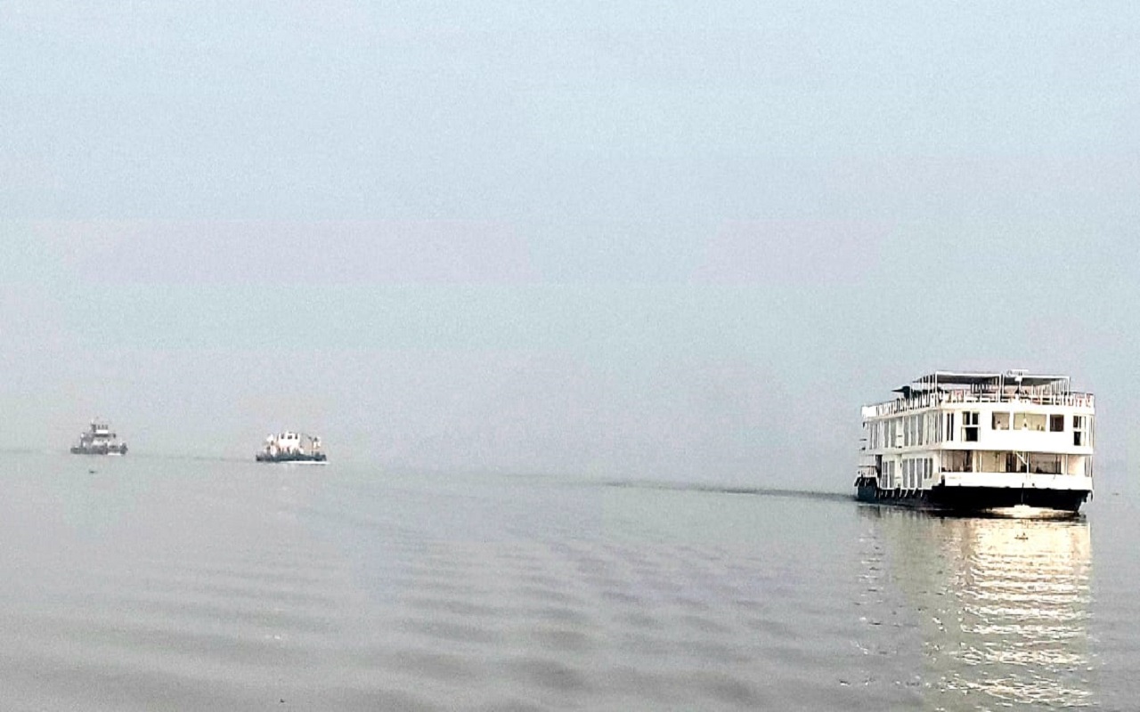 गंगा विलास क्रूज शनिवार की रात 8 बजे फरक्का पहुंचा था. रात होने के कारण क्रूज गंगा में ही रहा. इस दौरान तीन मरीन जहाज उसकी निगरानी करते रहे. रात में लॉक गेट को पार नहीं किया जा सकता था, इसलिए सुबह होने का इंतजार किया गया. सुबह लॉक गेट पार कर वह कोलकाता की ओर रवाना हुआ.