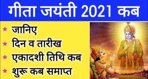 पंचांग के अनुसार, मार्गशीर्ष मास के शुक्ल पक्ष की एकादशी तिथि का प्रारंभ 13 दिसंबर दिन सोमवार को रात 09 बजकर 32 मिनट पर हो रहा है. अगले दिन 14 दिसंबर दिन मंगलवार को रात 11 बजकर 35 मिनट तक एकादशी तिथि (Geeta Jayanti 2021) मान्य होगी. ऐसे में इस वर्ष गीता जयंती 14 दिसंबर को मनाई जाएगी.