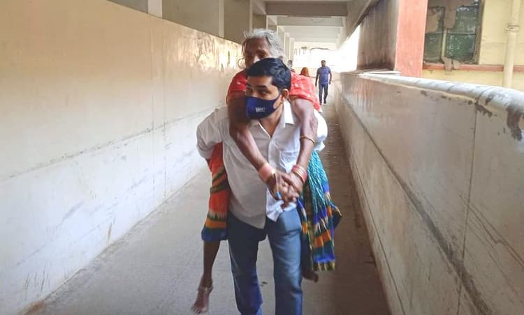 भरत यादव कहते हैं कि मां को इस हालत में बिना इलाज कराए नहीं छोड़ सकता. भरत यादव ने बताया कि वो मां को कंधे पर लादकर डॉ. ओम शंकर के पास गए. उन्होंने चौथी मंजिल पर कार्डियोलॉजी विभाग में जाने को कहा. लिफ्ट खराब थी. मां को पीठ पर लादकर चौथी मंजिल तक का सफर पूरा किया.