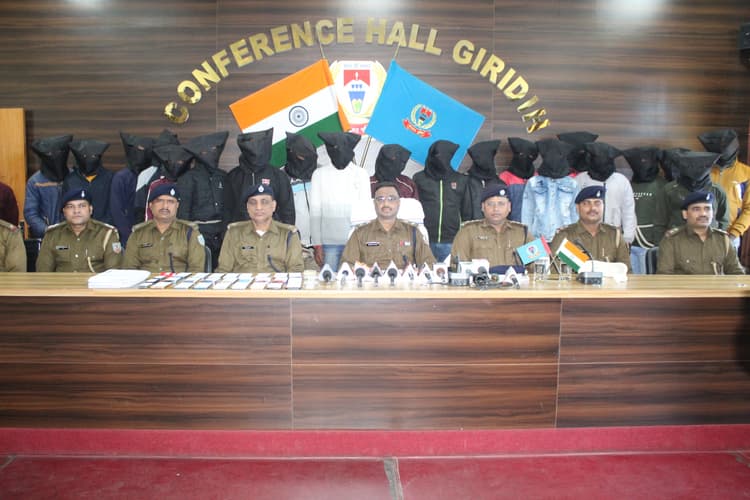 साइबर अपराधियों के खिलाफ गिरिडीह पुलिस ने अब तक की सबसे बड़ी कार्रवाई करते हुए अलग-अलग जगहों पर छापेमारी कर 20 लोगों को गिरफ्तार किया है. इनके पास से 27 मोबाइल फोन, 50 सिम कार्ड, 6 एटीएम कार्ड, चार बाइक, दो कार और एक लाख 38 हजार 100 रुपये नकद बरामद किये गये हैं. यह जानकारी शनिवार को गिरिडीह के एसपी दीपक कुमार शर्मा ने दी.