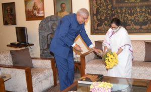 नये ट्वीट में राज्यपाल श्री धनखड़ ने लिखा, ‘मुख्यमंत्री राजभवन में आयीं. मैंने सपत्नीक उन्हें नववर्ष की शुभकामनाएं दीं.’ उधर, मुख्यमंत्री ममता बनर्जी राजभवन क्यों गयीं थीं, इस बारे में कुछ भी नहीं कहा. उन्होंने सिर्फ अपनी गाड़ी का शीशा नीचे किया और हाथ हिलाते हुए चली गयीं.