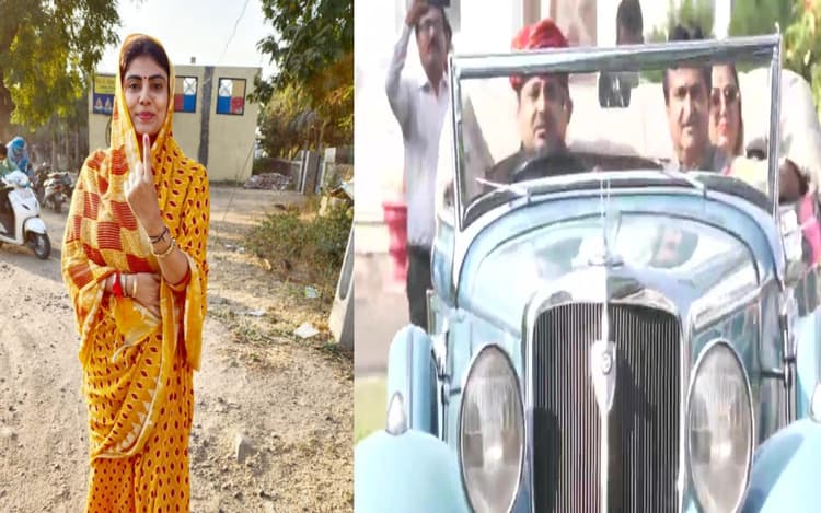 राजकोट के शाही परिवार ने भी मतादन में हिस्सा लिया. इस दौरान मांधाता सिंह ठाकोर अपनी पत्नी कादंबरी देवी के साथ विंटेज कार में मतदान करने पहुंचे.