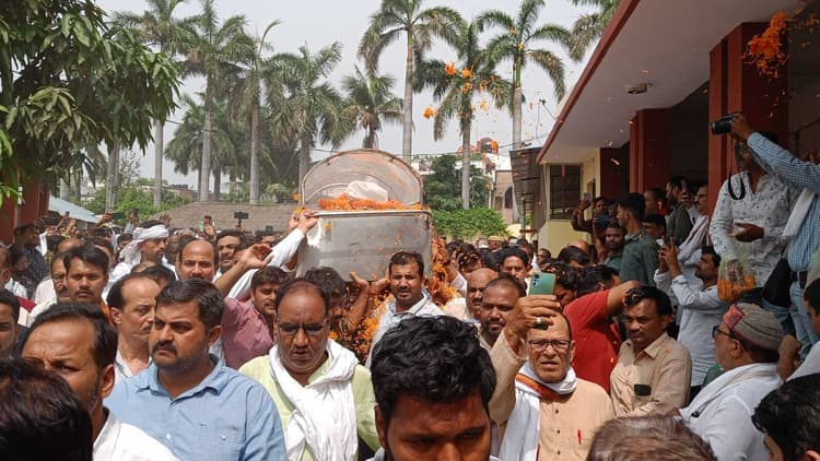 Gorakhpur: अखिल भारतीय लोकतांत्रिक कांग्रेस के संस्थापक और उत्तर प्रदेश सरकार में कैबिनेट मंत्री रहे पंडित हरिशंकर तिवारी की शव यात्रा बुधवार को उनके धर्मशाला स्थित तिवारी हाता से निकली. इस दौरान भारी संख्या में सर्मथकों का हुजूम उमड़ा. इस वजह से जहां से यात्रा गुजर रही है, वह यातायात जाम की स्थिति हो गई है. शव यात्रा हाता से निकल कर नौसढ़, बाघागाड़ा, महावीर छपरा, डवरपार, बेलीपार, कसिहार, कौड़ीराम, भलुवान, गगहा, मझगांवा, हाटा, साउंखोर होते हुए उनके पैतृक गांव टांड़ा बड़हलगंज पहुंचेगी, जहां अंतिम संस्कार किया जाएगा.