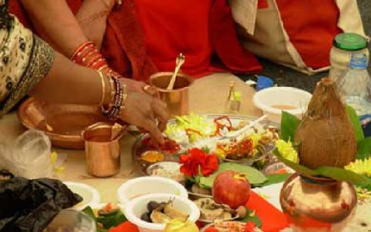 सभी प्रतिमाओं को केले के पत्ते पर रखा जाता है. सर्वप्रथम कलश के ऊपर नारियल रखकर लाल कलावा बांध कर पूजन किया जाता है.