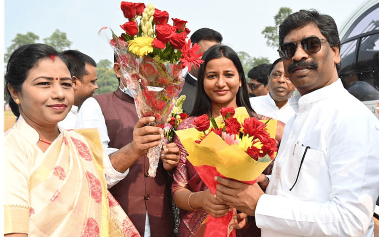 रजरप्पा में 3 घंटा 26 मिनट रुके, 39 मिनट दिया भाषणमुख्यमंत्री हेमंत सोरेन हेलीकॉप्टर से रजरप्पा के डीएवी ग्राउंड में हेलीपैड पर दोपहर 12 बजकर 56 मिनट पर पहुंचे. यहां विधायक ममता देवी, विधायक अंबा प्रसाद, पूर्व विधायक योगेंद्र प्रसाद महतो व कांग्रेस के प्रदेश कार्यकारी अध्यक्ष शहजादा अनवर ने बुके देकर मुख्यमंत्री का स्वागत किया. तत्पश्चात सीएम को हेलीपैड स्थल पर गार्ड ऑफ ऑनर दिया गया. इसके बाद मुख्यमंत्री कार्यक्रम स्थल पर पहुंचे. उन्होंने स्टेज से 39 मिनट तक भाषण दिया. शाम 4 बजकर 22 मिनट पर हेलीकॉप्टर से वापस रांची रवाना हो गये.
