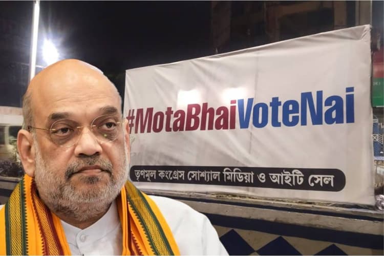 पश्चिम बंगाल की राजधानी कोलकाता के धर्मतला में केंद्रीय गृह मंत्री अमित शाह (Union Home Minister Amit Shah) की बैठक से पहले राज्य की सत्तारूढ़ तृणमूल ने बुधवार को सुबह से ही शहर भर में पोस्टर और बैनर लगाए. उनके सोशल मीडिया और आईटी सेल द्वारा शहर के विभिन्न महत्वपूर्ण स्थानों पर लगाए गए पोस्टर और बैनर में लिखा है, ‘मोटा भाई, वोट नई’. हालांकि, तृणमूल की ओर से बताया गया है कि इस संबोधन का केंद्रीय गृह मंत्री की उपस्थिति से कोई लेना-देना नहीं है.