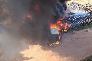 आग की चिंगारी निकल कर पास रखे रंग वाले केमिकल के डब्बे में पकड़ लिया. जो कि काफी तेजी से फैलने लगा. उन्होंने बताया कि आग शीघ्र ही इतना भयावह रूप ले लिया का पास में खड़ी एक 16 पहिया वाहन को अपने चपेट में ले लिया,जिसमें वह पुरी तरह जलकर राख हो गया.