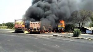 जालौन में भीषण सड़क हादसा, आपस में टकराए दो डंपर, पांच वाहन जलकर खाक, तीन चालक झुलसे