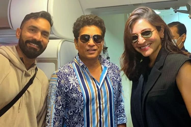 अनुष्का शर्मा ने सचिन तेंदुलकर, दिनेश कार्तिक के साथ दिया पोज