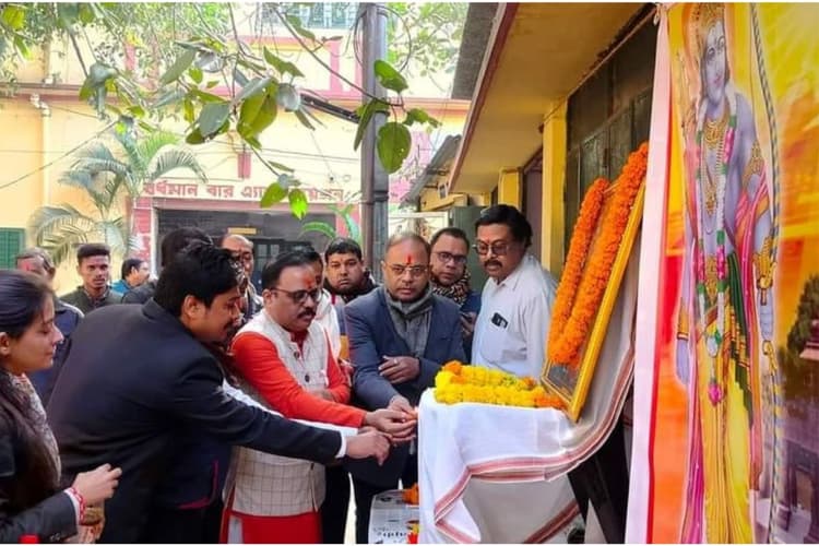 पश्चिम बंगाल के पूर्व बर्दवान जिला में भी मौजूद सभी मंदिरों और शिवालयों में सोमवार को अयोध्या में रामलला के प्राण प्रतिष्ठा कार्यक्रम के दौरान उत्साह का माहौल था. इन सब के बीच ही जिले में बर्दवान जिला अदालत परिसर में भी बार एसोसिएशन द्वारा भगवान श्रीराम की पूजा अर्चना अदालत के वकीलों द्वारा की गयी. मौके पर बर्दवान सदर भाजपा पार्टी अध्यक्ष अभिजीत ता भी शामिल हुए. इसके पूर्व जिला भाजपा पार्टी अध्यक्ष जिले के नीलपुर आमबगान, पारबीरहटा स्थित बाबा धर्मराज मंदिर, बर्दवान के उल्लास में, स्वस्तिपल्ली,पालसीट, शक्तिगढ़ उत्तरी बाजार, बर्दवान उत्तर विधानसभा के पुटुंडा गांव, हीरागाछी कुलारी गांव समेत बर्दवान बदामतला स्थित बाणेश्वर शिव मंदिर में आयोजित भगवान श्री रामचन्द्र की पूजा में उपस्थित थे. गौरतलब है कि पानागढ़ में जगह -जगह पर मंदिरों राम लला की पूजा अर्चना जारी है.