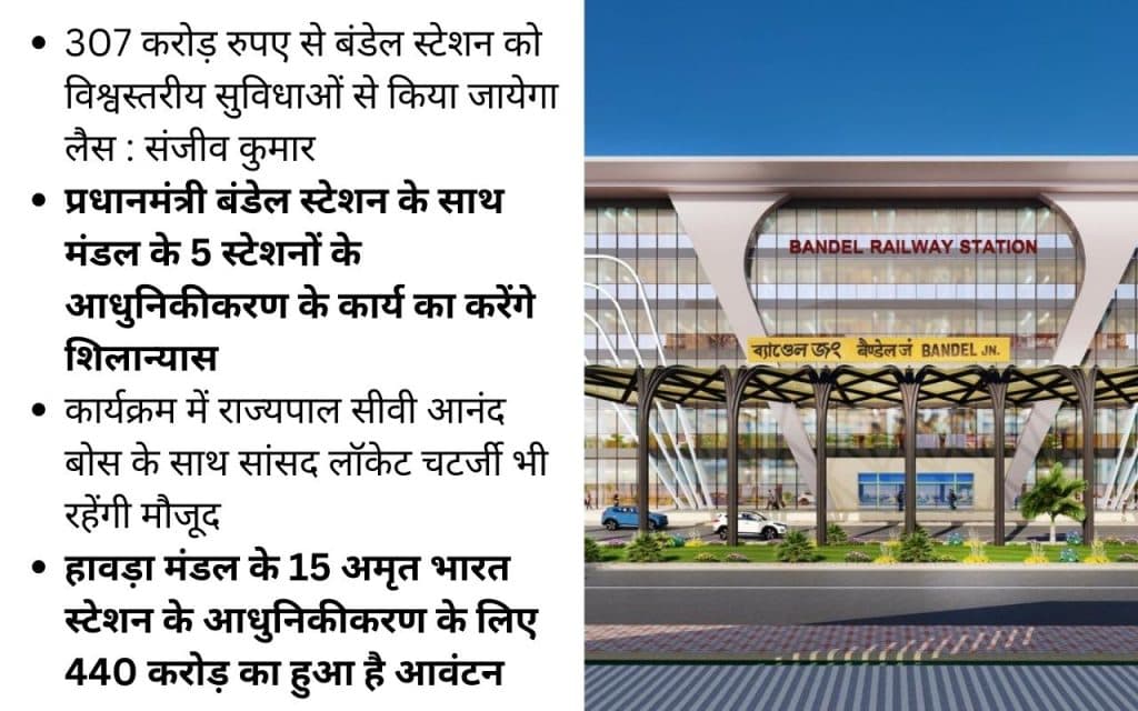 - प्रधानमंत्री बंडेल स्टेशन के साथ मंडल के 5 स्टेशनों के आधुनिकीकरण के कार्य का करेंगे शिलान्यास