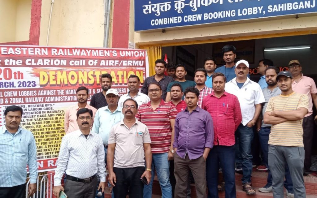 साहिबगंज में धरना-प्रदर्शन करने वालों में इस्टर्न रेलवे मेंस यूनियन के सचिव अनिल राय, केके कुणाल, आरडी मंडल, मुन्ना कुमार, कमलेश, केडी मंडल, रवि कुमार, अमित कुमार, रंजन कुमार, सुमित राज, मौसम कुमार, मुकेश कुमार सहित दर्जनों रेल कर्मी मौजूद थे.