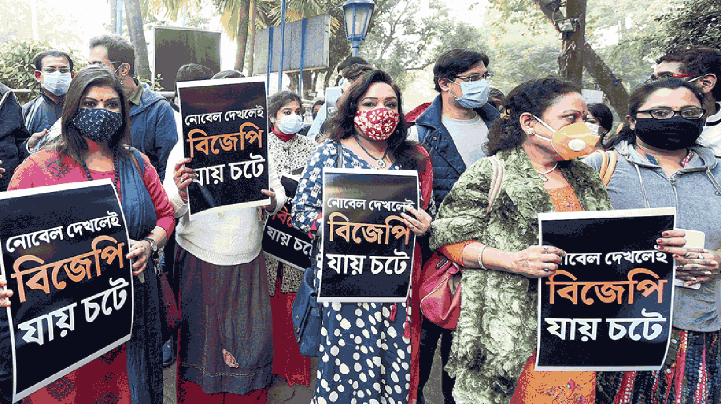विभिन्न क्षेत्रों के बुद्धिजीवियों ने रविवार को विश्व भारती विश्वविद्यालय की जमीन पर कथित अवैध कब्जे के मामले में नोबेल पुरस्कार विजेता अमर्त्य सेन के प्रति अपना समर्थन व्यक्त करने के लिए आयोजित विरोध-प्रदर्शन में हिस्सा लिया.