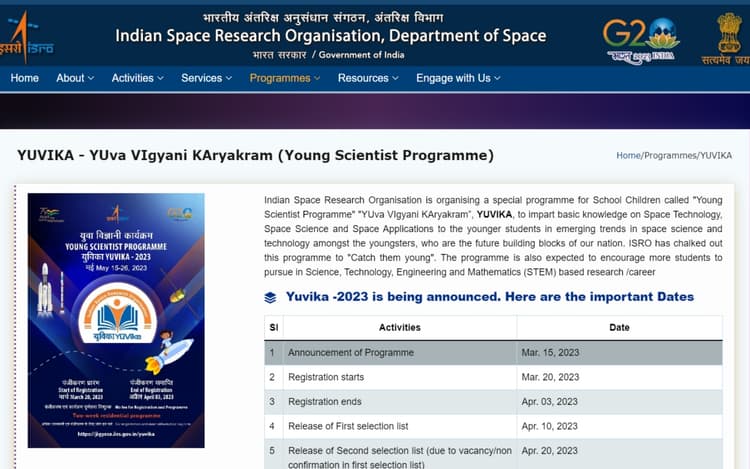 प्रोग्राम में हिस्सा लेने के इच्छुक छात्र इसरो की वेबसाइट isro.gov.in/YUVIKA पर जाकर ऑनलाइन रजिस्ट्रेशन कर सकते हैं.