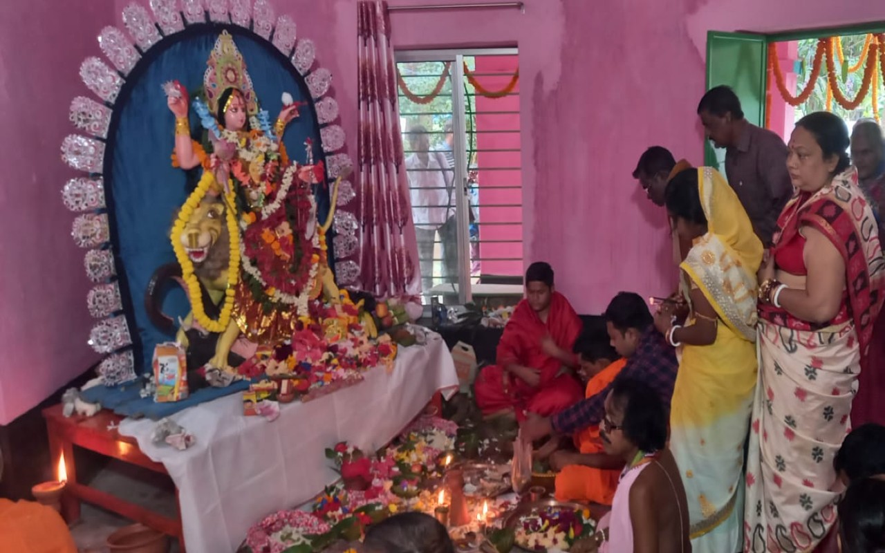 Seraikela Kharsawan : सरायकेला खरसावां के तलसाही स्थित श्रीराम कृष्ण तारक मठ में बुधवार को मां जगद्धात्री की पूजा उत्साह के साथ शुरू हुई. विधि-विधान से मंत्रोच्चारण के साथ मां जगधात्री की प्रतिमा स्थापित कर भक्तों ने परंपरागत ढंग से पूजा अर्चना की. बुधवार को मंदिर के पट खुलते ही मां के दर्शन के लिए भक्तों की भीड़ उमड़ पडी. पुजारी ने वैदिक मंत्रोच्चारण के साथ जगत को धारण करने वाली मां दुर्गा की शक्ति स्वरूपा जगद्धात्री की पूजा की. साथ ही मां जगद्धात्री से परिवार की सुख, शांति और समृद्वि का मन्नत मांगा. पूजा-अर्चना के दौरान विशेषकर बंगाली समुदाय के लोग काफी संख्या में जुटे. स्थानीय लोगों के साथ-साथ बड़ी संख्या में बंगाल से भी श्रद्धालु पहुंचे थे. इस दौरान भंडारा में लगभग तीन हजार भक्तों ने प्रसाद ग्रहण किया. कोरोना के कारण दो साल बाद यहां धूमधाम के साथ मां जगद्धात्री की पूजा के साथ साथ भंडारे का आयोजन किया गया.