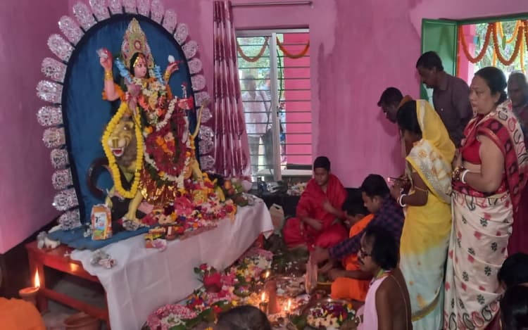 Seraikela Kharsawan : सरायकेला खरसावां के तलसाही स्थित श्रीराम कृष्ण तारक मठ में बुधवार को मां जगद्धात्री की पूजा उत्साह के साथ शुरू हुई. विधि-विधान से मंत्रोच्चारण के साथ मां जगधात्री की प्रतिमा स्थापित कर भक्तों ने परंपरागत ढंग से पूजा अर्चना की. बुधवार को मंदिर के पट खुलते ही मां के दर्शन के लिए भक्तों की भीड़ उमड़ पडी. पुजारी ने वैदिक मंत्रोच्चारण के साथ जगत को धारण करने वाली मां दुर्गा की शक्ति स्वरूपा जगद्धात्री की पूजा की. साथ ही मां जगद्धात्री से परिवार की सुख, शांति और समृद्वि का मन्नत मांगा. पूजा-अर्चना के दौरान विशेषकर बंगाली समुदाय के लोग काफी संख्या में जुटे. स्थानीय लोगों के साथ-साथ बड़ी संख्या में बंगाल से भी श्रद्धालु पहुंचे थे. इस दौरान भंडारा में लगभग तीन हजार भक्तों ने प्रसाद ग्रहण किया. कोरोना के कारण दो साल बाद यहां धूमधाम के साथ मां जगद्धात्री की पूजा के साथ साथ भंडारे का आयोजन किया गया.
