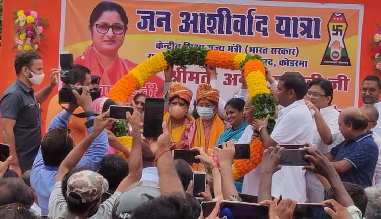 जन आशीर्वाद यात्रा में अन्नपूर्णा देवी का विधायक डॉ नीरा यादव के साथ-साथ अन्य लोग अभिवादन करते रहे. जगह-जगह पर उनका भव्य स्वागत किया गया. बाद में यात्रा चंदवारा के लिए रवाना हुई जो बरही, हजारीबाग, रामगढ़ होते हुए रांची पहुंचेगी. मंगलवार को यात्रा का दूसरा चरण शुरू होगा, जो धनबाद गिरिडीह में होगा. मौके पर भाजपा के प्रदेश महामंत्री आदित्य साहू, कोडरमा विधायक डॉ नीरा यादव, प्रमंडल प्रभारी बालमुकुंद सहाय, प्रदेश मंत्री सुबोध सिंह गुड्डू, जिला प्रभारी टुन्नु गोप, अमित कुमार, जिलाध्यक्ष नितेश चंद्रवंशी, वरिष्ठ नेता रमेश सिंह, अशोक बडाईक, रंजीत कुमार, अमरेश कुमार, राजकुमार यादव, चंद्रशेखर जोशी व टन्य मौजूद थे.