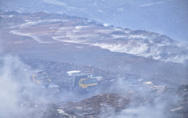 यह दृश्य धनबाद जिले के गोधर इलाके की एक ओपन कास्ट माइंस का है. बीते शुक्रवार से रुक-रुक लगातार हो रही बारिश के चलते अग्नि प्रभावित इलाके में स्थित इस कोयला खदान से गैस का गुबार उठते देखा गया है.