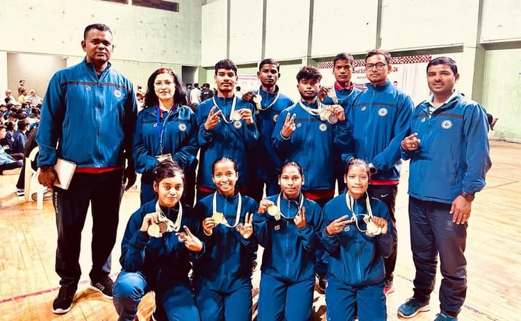 रांची. गुजरात के नाडियाड में आयोजित 67वीं स्कूल गेम्स तीरंदाजी में झारखंड की अंडर-19 टीम ने स्वर्ण पदक जीता. बालिका टीम में मधु कुमारी, सरीना, मनीषा और सुनीता शामिल हैं. जबकि बालक वर्ग की टीम ने रजत पदक अपने नाम किया. इस टीम में चंदन प्रमाणिक, राजेश उरांव, संजय शांडिल व सुनील शामिल थे. चंदन ने 30 मीटर में रजत और ओवरऑल में कांस्य पदक जीता. मनीषा ने 30 मीअर में रजत और मधु कुमारी ने 50 मीटर इवेंट में रजत और ओवरऑल में कांस्य पदक जीता. टीम के साथ मैनेजर के रूप में शारीरिक शिक्षक अमरनाथ शर्मा, कोच मोहन साहू व आर्यन साव गये थे. पदक विजेताओं को राज्य योजना कार्यक्रम पदाधिकारी धीरसेन सोरेंग सहित अन्य ने बधाई दी.