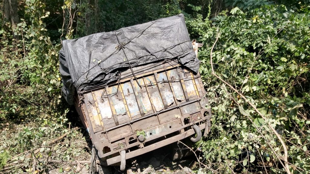 झारखंड से छड़ लेकर बिहार जा रहे ट्रक का ब्रेक हुआ फेल, खाई में गिरने से दो लोगों की मौत, एक घायल