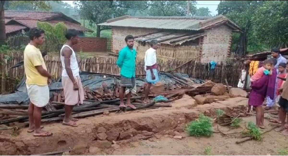 देवरी में मूसलाधार बारिश से देवरी प्रखंड के बेड़ोडीह पंचायत के बेहराडीह गांव में जर्जर होकर तीन भाइयों का संयुक्त घर गिर गया. इस घटना में घर के एक कमरे में सो रहा युवक बाल-बाल बच गया. जानकारी के मुताबिक बेहराडीह गांव के जयदेव तिवारी, सहदेव तिवारी, रामप्रसाद तिवारी का संयुक्त घर जर्जर होकर गिर गया. घर गिरने की इस घटना में रामप्रसाद तिवारी के पुत्र सूर्यकांत तिवारी बाल-बाल बच गए. सूर्यकांत घर के अंदर सो रहे थे. इसी दौरान घर गिरने की घटना हुई. वहीं जयदेव तिवारी के घर मे रखा गेहूं, चावल लकड़ी बर्तन आदि सामान मलबा के नीचे दब गया. इस घटना में सहदेव तिवारी की बछिया मिट्टी से दब गयी थी, लेकिन ग्रामीणों के द्वारा मलबा को हटाकर बछिया को सुरक्षित बाहर निकाल लिया गया.
