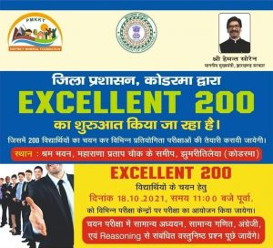 Jharkhand News, कोडरमा न्यूज (विकास) : झारखंड के कोडरमा जिले में विभिन्न प्रतियोगी परीक्षाओं की तैयारी को लेकर एक्सीलेंट-200 नाम से विशेष कोचिंग शुरू की जा रही है. इसे लेकर तैयारी जोरों पर है. एक्सीलेंट-200 के तहत छात्रों का चयन करने के लिए 18 अक्टूबर को परीक्षा आयोजित की जा रही है. चयनित छात्रों को विशेष कोचिंग का लाभ मिलेगा. कोडरमा जिला प्रशासन द्वारा ये कवायद की जा रही है.
