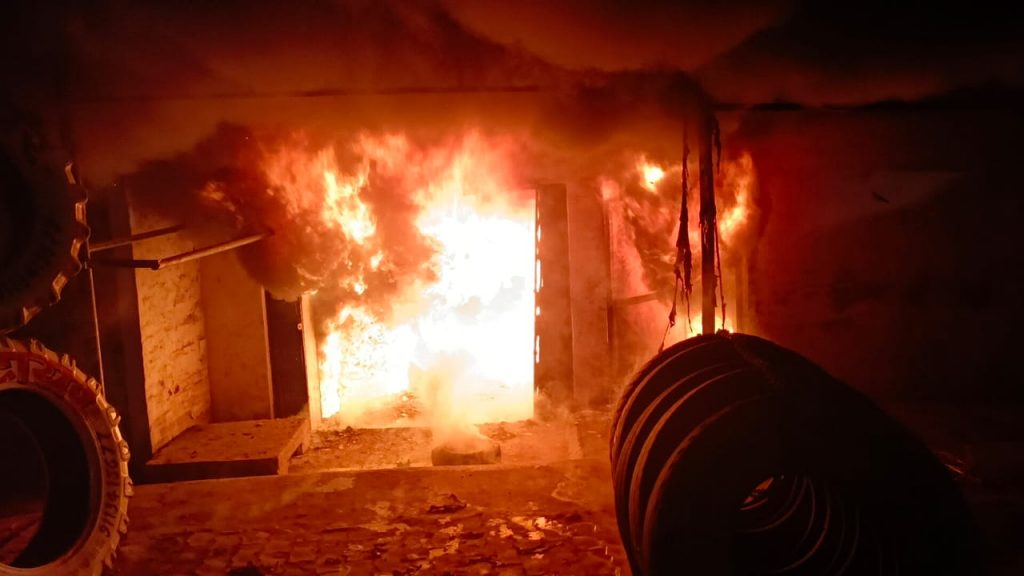 धनतेरस की पूर्व संध्या पर पटाखे से टायर दुकान में लगी आग, मची अफरा-तफरी, घंटों जाम से यात्री परेशान