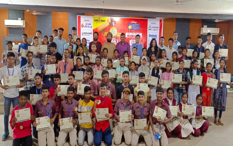 Prabhat Khabar Pratibha Samman: मैट्रिक और इंटरमीडिएट की परीक्षा में अच्छे अंक हासिल करने वाले खूंटी के होनहार विद्यार्थियों को प्रभात खबर ने रविवार को सम्मानित किया. प्रभात खबर की ओर से स्थानीय टाउन हॉल में आयोजित प्रतिभा सम्मान समारोह में मुख्य अतिथि उपायुक्त शशि रंजन, विशिष्ट अतिथि एसपी अमन कुमार सहित अन्य अतिथियों ने दीप प्रज्वलित कर समारोह का उद्घाटन किया. उन्होंने सभी होनहारों को मेडल और प्रशस्ति पत्र प्रदान किया.