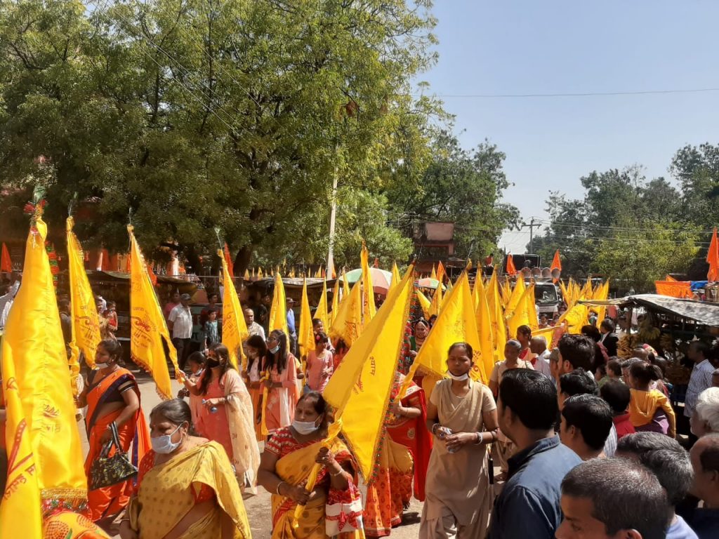Jharkhand News, Saraikela Kharsawan News, सरायकेला न्यूज (प्रताप मिश्रा) : श्री श्याम रंग रंगीला बसंत ऋतु महोत्सव को लेकर भव्य निशान एवं शोभा यात्रा निकाली गयी. इसमें भक्तों की काफी भीड़ उमड़ी. स्थानीय लक्ष्मी नारायण मंदिर से निशान यात्रा निकाली गयी, जो पूरे शहरी क्षेत्र का भ्रमण करते हुए उत्सव स्थल बिरसा स्टेडियम तक पहुंच कर समाप्त हुआ. निशान यात्रा में भक्त श्याम की भक्ति में डूबे रहे.