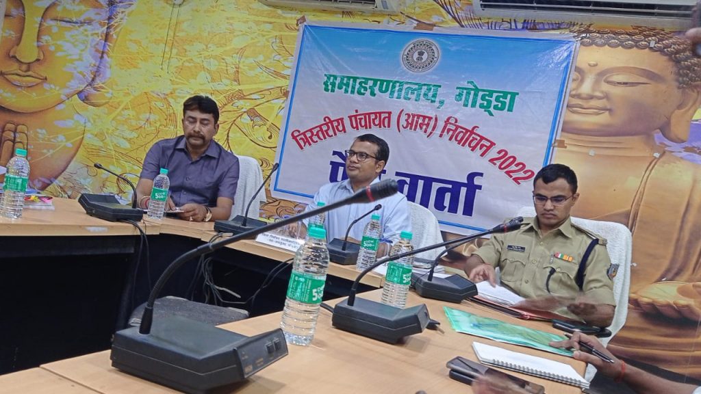 Jharkhand Panchayat Chunav 2022: झारखंड सरकार की ओर से त्रिस्तरीय पंचायत चुनाव को लेकर तिथि की घोषणा के साथ गोड्डा जिला प्रशासन भी अपनी तैयारी पूरी कर ली है. गोड्डा के नौ प्रखंडों में तीन चरणों में चुनाव संपन्न होगा. इसमें पहले चरण में तीन प्रखंडों में मुख्य रूप से गोड्डा, पोडैयाहाट और सुंदरपहाडी प्रखंड के साथ-साथ दूसरे चरण में महगामा, बसंतराय और पथरगामा तथा तीसरे चरण में मेहरमा, ठाकुरगंगटी और बोआरीजोर प्रखंड में पंचायत चुनाव संपन्न किया जायेगा. अधिसूचना के साथ ही जिले में चुनाव अाचार संहिता लागू हो गयी है. इस बात की जानकारी डीसी भोर सिंह यादव तथा एसपी नाथू सिंह मीणा ने संयुक्त प्रेस वार्ता में बताया.