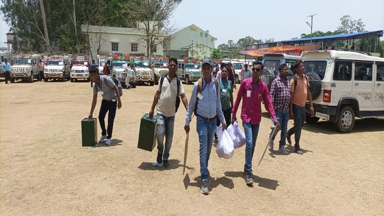 Jharkhand Panchayat Chunav 2022: झारखंड पंचायत चुनाव के लिए तीसरे चरण के लिए कल 24 मई को वोटिंग होगी. कड़ी सुरक्षा में सुबह 7 बजे से मतदान होगा. लातेहार जिला मुख्यालय के भारत माता भवन के प्रांगण में बनाये गये डिस्पैच सेंटर से पंचायत चुनाव के तीसरे चरण के मतदान को लेकर मतदानकर्मियों को सामग्री व मतपेटी देकर कलस्टर के लिए रवाना किया गया. झारखंड पंचायत चुनाव के तीसरे चरण में लातेहार जिले के बालूमाथ, बरियातु एवं हेरहंज के लिए भारत माता भवन के परिसर में बनाये गए डिस्पैच सेंटर में मतदान कर्मी पार्टी मिलान करने के बाद सामग्री लेकर अपने गंतव्य के लिए रवाना हुए.