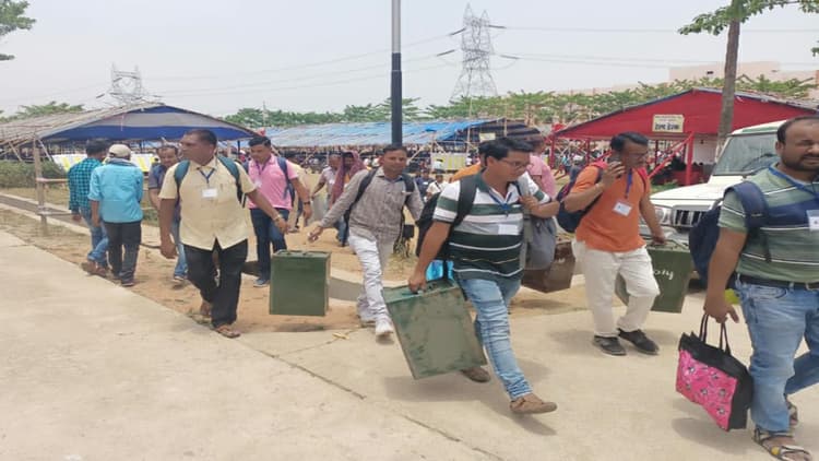 अपने-अपने बूथों की ओर रवाना हुए मतदान कर्मी