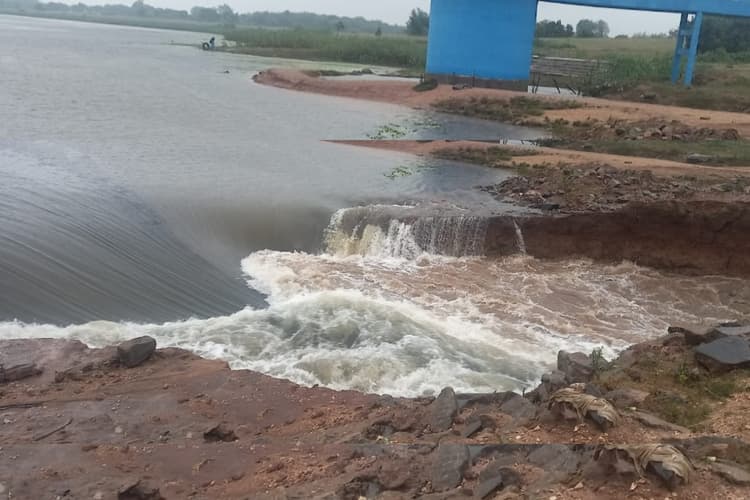 राजधनवार (गिरिडीह), मृणाल सिन्हा : मूसलाधार बारिश के दौरान रविवार सुबह राजधनवार के चर्चित नौलखा डैम का कलवर्ट बह गया. कलवर्ट ढह जाने से डैम से काफी रफ्तार में पानी निकलने लगा, जिससे डैम का मेड़ भी क्षतिग्रस्त हो गया.